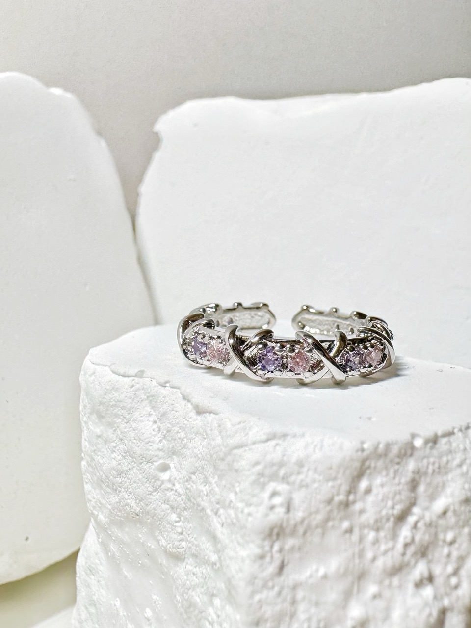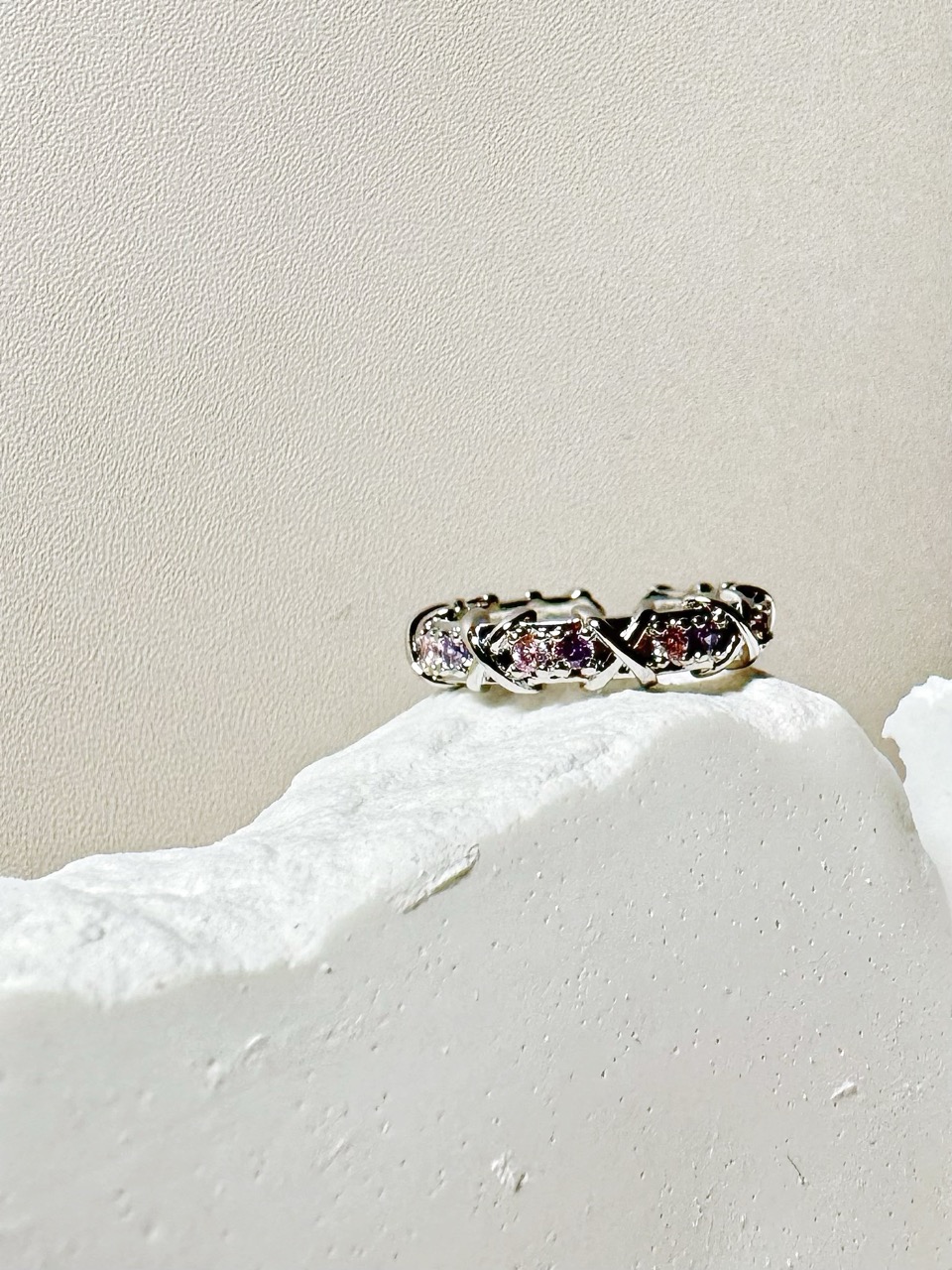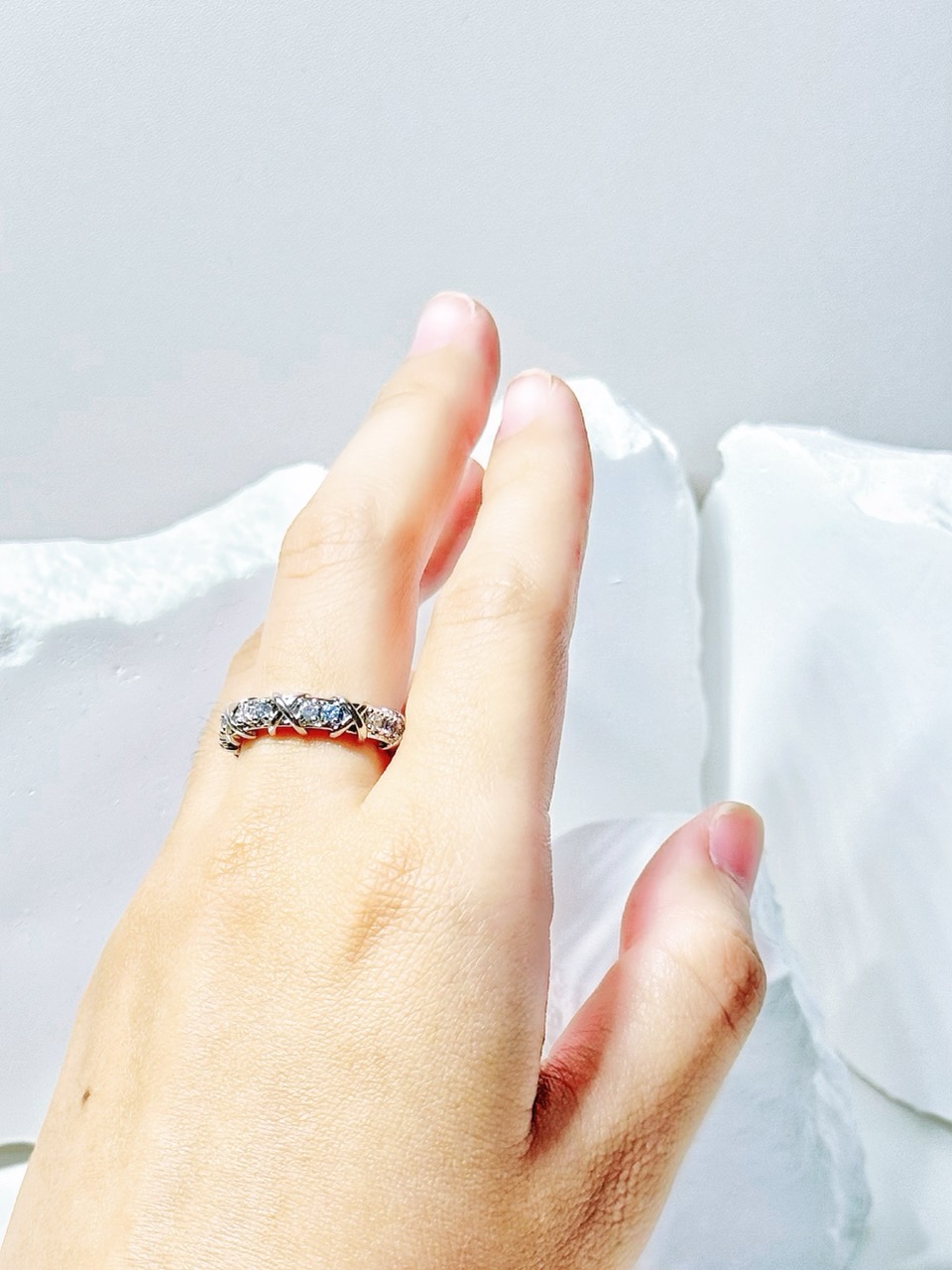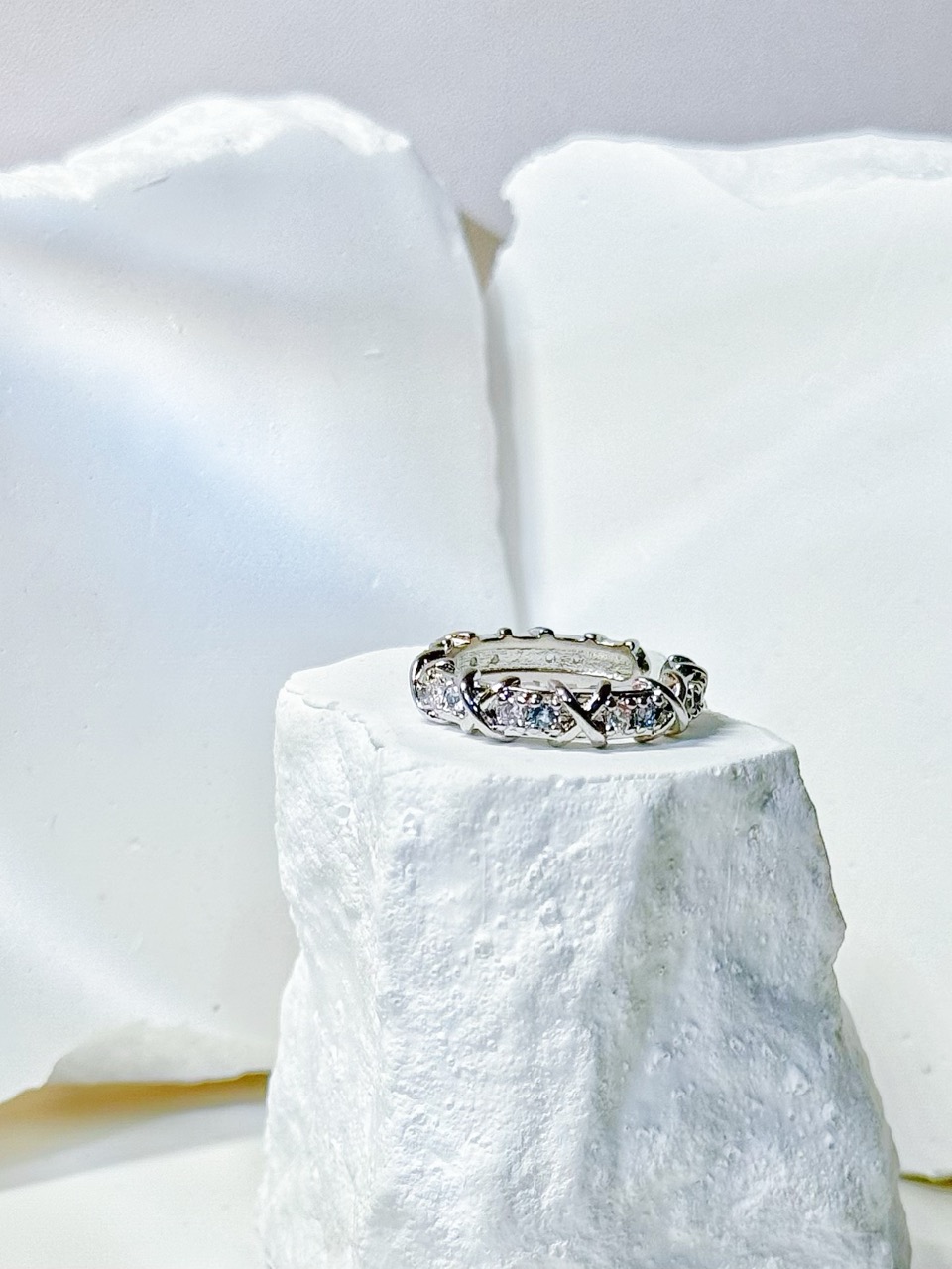 鋯石滿鑽交叉復古戒指